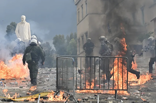 Υπενθυμίζεται ότι γύρω στη 1 μ.μ., και ενώ είχαν ολοκληρωθεί οι ομιλίες, ομάδες όπως οι παραπάνω, που από το πρωί συγκεντρώνονταν μέσα και γύρω από την πλατεία, ξεκίνησαν να εξοπλίζονται και να εξαπολύουν μολότοφ, καπνογόνα και μάρμαρα προς τις δυνάμεις των ΜΑΤ, δίνοντας το πρόσχημα στην κυβέρνηση να διαλύσει τους συγκεντρωμένους που ακόμα δεν είχαν αποχωρήσει.