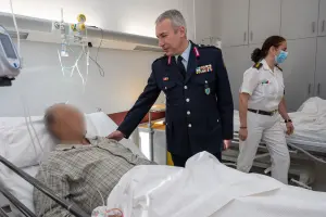 Τους αστυνομικούς που νοσηλεύονται στο 401 Γενικό Στρατιωτικό Νοσοκομείο Αθηνών επισκέφθηκαν σήμερα, Τρίτη 23 Δεκεμβρίου 2025, ενόψει των Χριστουγέννων, ο Υφυπουργός Προστασίας του Πολίτη, Ιωάννης Λαμπρόπουλος, και ο Αρχηγός της Ελληνικής Αστυνομίας, Αντιστράτηγος Δημήτριος Μάλλιος.