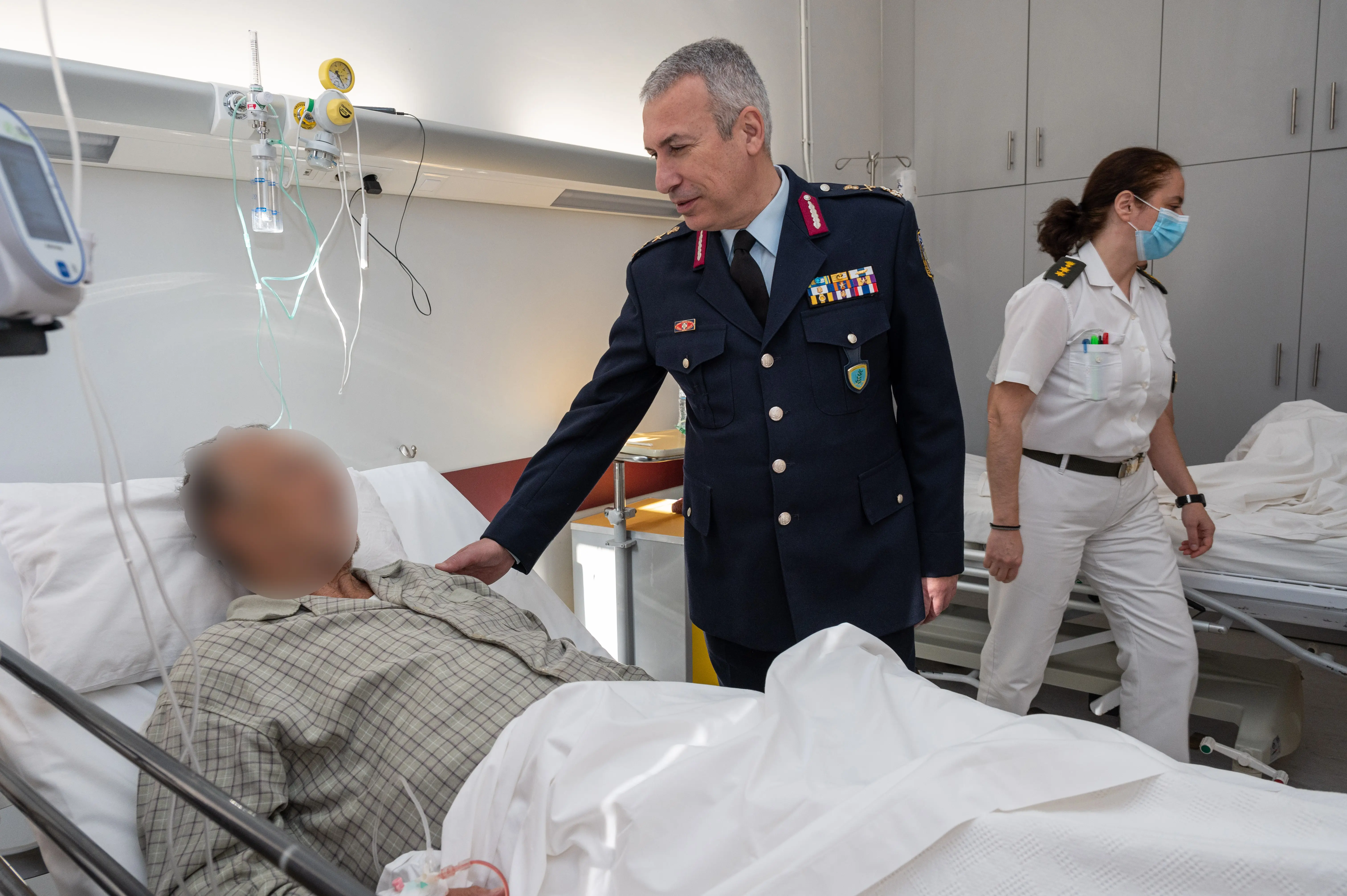 Ο Υφυπουργός και ο Αρχηγός της ΕΛ.ΑΣ. προσέφεραν συμβολικά δώρα στους νοσηλευόμενους αστυνομικούς, ευχόμενοι ταχεία ανάρρωση και καλή επιστροφή στα καθήκοντά τους, ενώ ενημερώθηκαν από τους θεράποντες ιατρούς για την πορεία της υγείας τους.